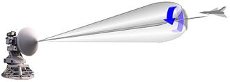 Conical scanning is a system used in early radar units to improve their accuracy, as well as making it easier to steer the antenna properly to point at a target. Conical scanning is similar in concept to the earlier lobe switching concept used on some of the earliest radars, and many examples of lobe switching sets were modified in the field to conical scanning during World War II, notably the German Würzburg radar. Antenna guidance can be made entirely automatic, as in the American SCR-584. Potential failure modes and susceptibility to deception jamming led to the replacement of conical scan systems with monopulse radar sets. They are still used by the Deep Space Network for maintaining communications links to space probes.[1] The spin-stabilized Pioneer 10 and Pioneer 11 probes used onboard conical scanning maneuvers to track Earth in its orbit.[2]