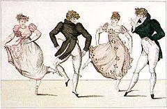 For some time English publishers issued annual collections of these dances in popular pocket-books. Jane Austen, Charles Dickens and Thomas Hardy all loved country dancing and put detailed descriptions into their novels. But the vogue for the waltz and the quadrille ousted the country dance from English ballrooms in the early 19th century, though Scottish country dance remained popular.[11][19]