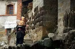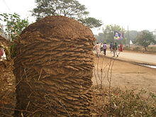 Cow dung is also an optional ingredient in the manufacture of adobe mud brick housing depending on the availability of materials at hand.[2]