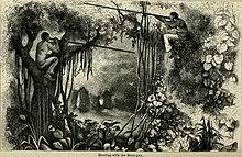 19th century depiction of hunting with blowguns in the Amazon rainforest.