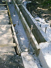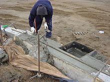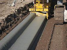 Concrete curb may be constructed by setting forms by hand, filling them, letting them set up, and then removing the forms. When large quantities of curb are to be constructed, it is often more efficient to use a slip form casting machine. Curbs can also be precast at a central location and trucked to the construction site.