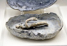 Ancient Greek cursed object against enemies in a trial, written on a lead figurine put in a lead box, 420-410 BC, Kerameikos Archaeological Museum, Athens.