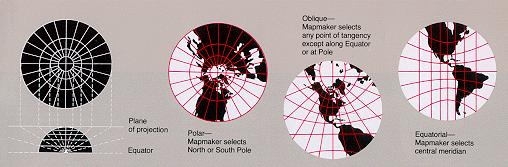 The three developable surfaces (plane, cylinder, cone) provide useful models for understanding, describing, and developing map projections. However, these models are limited in two fundamental ways. For one thing, most world projections in use do not fall into any of those categories. For another thing, even most projections that do fall into those categories are not naturally attainable through physical projection. As L.P. Lee notes,