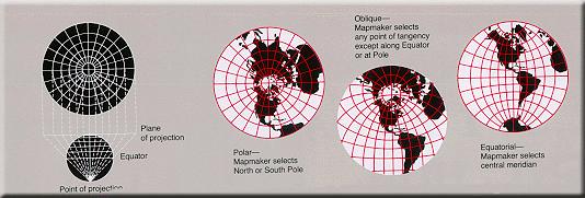 Some of the simplest map projections are literal projections, as obtained by placing a light source at some definite point relative to the globe and projecting its features onto a specified surface. Although most projections are not defined in this way, picturing the light source-globe model can be helpful in understanding the basic concept of a map projection.