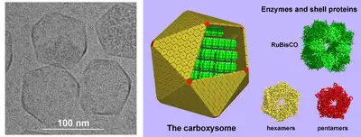 - ^ Yeates TO, Kerfeld CA, Heinhorst S, Cannon GC, Shively JM (August 2008). "Protein-based organelles in bacteria: carboxysomes and related microcompartments". Nat. Rev. Microbiol. 6 (9): 681–691. doi:10.1038/nrmicro1913. PMID 18679172. S2CID 22666203.