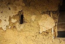 Evidence for wattle and daub (or "wattle and reed") fire pits, storage bins, and buildings shows up in Egyptian archaeological sites such as Merimda and El Omari, dating back to the 5th millennium BCE, predating the use of mud brick and continuing to be the preferred building material until about the start of the First Dynasty. It continued to flourish well into the New Kingdom and beyond.[2] Vitruvius refers to it as being employed in Rome.[3] A review of English architecture especially reveals that the sophistication of this craft is dependent on the various styles of timber frame housing.[4]