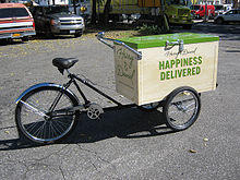 Some products are delivered to consumers on a periodic schedule.[6] Historically, home delivery of many goods was much more common in urban centres of the developed world. At the beginning of the 20th century, perishable farm items such as milk, eggs and ice, were delivered weekly or even daily to customers by local farms. Milkmen delivered milk and other farm produce. With the advent of home refrigeration and better distribution methods, these products are today largely delivered through the same retail distribution systems as other food products. Icemen delivered ice for iceboxes until the popularization of home refrigerator rendered them obsolete in most places. Similarly, laundry was once picked up and washed at a commercial laundry before being delivered to middle-class homes until the appearance of the washing machine and dryer (the lower classes washed their own and the upper classes had live-in servants). Likewise deliveries of coal and wood for home heating were more common until they were replaced in many areas by natural gas, oil, or electric heating.[7] Some products, most notably home heating oil, are still delivered periodically. Human blood may be delivered to hospitals on a periodic schedule.[6]