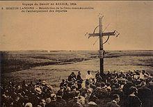 Le Devoir began as several other businesses besides the newspaper. These ventures included a general printer and publishing house, a bookstore, and a travel agency. Trips were initially organized to coincide with Catholic congresses around the world, as well as for "pilgrimages", allowing Quebecois to visit the French diaspora across North America. Such trips included Acadia (1924, 1927), Ontario (1925), and Louisiana (1931). The purpose of the travel venture was, said Napoleon Lafortune, to "extend the 'work' of the newspaper to defend the French language and the Catholic faith, but by other means."[6] The unusual service officially lasted from 1924 to 1947, though it effectively ended at the start of World War II when international civilian travel became very difficult.