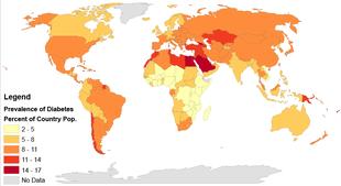 - ^ a b Wild S, Roglic G, Green A, Sicree R, King H (May 2004). "Global prevalence of diabetes: estimates for the year 2000 and projections for 2030". Diabetes Care. 27 (5): 1047–53. doi:10.2337/diacare.27.5.1047. PMID 15111519.
