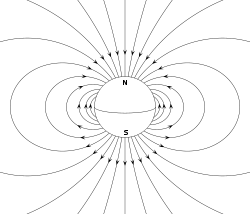 - ^ Magnetic colatitude is 0 along the dipole's axis and 90° in the plane perpendicular to its axis.