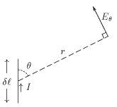 To find the far-field electric and magnetic fields generated by a short dipole we use the result shown below for the Hertzian dipole (an infinitesimal current element) at a distance r from the current and at an angle θ to the direction of the current, as being:[12]