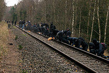 Nonviolent direct action has historically been an assertive regular feature of the tactics employed by social movements, including Mahatma Gandhi's Indian Independence Movement and the Civil Rights Movement. Anarchists organize almost exclusively though direct action, this manifests as a varied set of actions, non-violent or violent.[1][2] Direct action is used by anarchists due to a rejection of party politics, and refusal to work within hierarchical bureaucratic institutions.[3][4]
