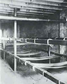 These were lofts or other large, open buildings that were subdivided into tiny cubicles using boards or sheets of corrugated iron. Since these walls were always one to three feet short of the floor or ceiling, the open space was sealed off with chicken wire, hence the name "cage hotels."[11]