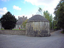 Stone dovecotes were built in Ireland from the Norman period onward, to supply meat to monastic kitchens and to large country houses.[9] A traditional dovecote was a multistorey building with inner walls lined with alcoves or ledges to mimic a cave.[10] They survive in many parts of Ireland, with notable examples at Ballybeg Priory,[11] Oughterard,[12] Cahir,[13] Woodstock Estate, Mosstown, Adare.[14][15] Three Irish Cistercian houses held dovecotes: St. Mary's Abbey, Glencairn, Mellifont Abbey and Kilcooley Abbey.[16]