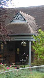 Decorative dovecote on house gable in Finneytown, Ohio