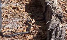 Various patterns of behavior enable certain ectotherms to regulate body temperature to a useful extent. To warm up, reptiles and many insects find sunny places and adopt positions that maximise their exposure; at harmfully high temperatures they seek shade or cooler water. In cold weather, honey bees huddle together to retain heat. Butterflies and moths may orient their wings to maximize exposure to solar radiation in order to build up heat before take-off.[1] Gregarious caterpillars, such as the forest tent caterpillar and fall webworm, benefit from basking in large groups for thermoregulation.[7][8][9][10][11] Many flying insects, such as honey bees and bumble bees, also raise their internal temperatures endothermally prior to flight, by vibrating their flight muscles without violent movement of the wings (see insect thermoregulation). Such endothermal activity is an example of the difficulty of consistent application of terms such as poikilothermy and homiothermy.[1]