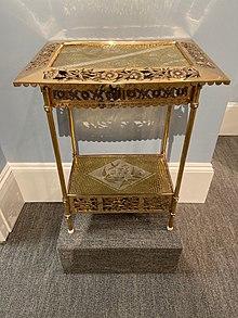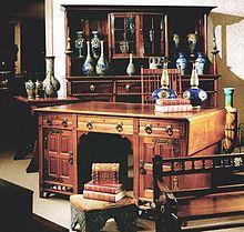 According to Christopher Dresser, the primary element of decorative art is utility. The maxim "art for art's sake," identifying art or beauty as the primary element in other branches of the Aesthetic Movement, especially fine art, cannot apply in this context. That is, decorative art must first have utility, but may also be beautiful.[12] However, according to Michael Shindler, the decorative art branch of the Aesthetic Movement, was less the utilitarian cousin of Aestheticism's main 'pure' branch, and more the very means by which aesthetes exercised their fundamental aesthetic strategy. Like contemporary art, Shindler writes that aestheticism was born of "the conundrum of constituting one’s life in relation to an exterior work" and that it "attempted to overcome" this problem "by subsuming artists within their work in the hope of yielding—more than mere objects—lives which could be living artworks." Thus, "beautiful things became the sensuous set pieces of a drama in which artists were not like their forebears a sort of crew of anonymous stagehands, but stars. Consequently, aesthetes made idols of portraits, prayers of poems, altars of writing desks, chapels of dining rooms, and fallen angels of their fellow men."[13]