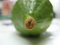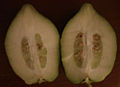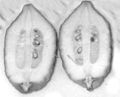 A later and not as widely accepted indicator is the orientation of the seed. In a pure etrog, the seeds are oriented vertically, unless crowded by neighboring seeds; in lemons and hybrids, the seeds are oriented horizontally even when they are not crowded.[12]
