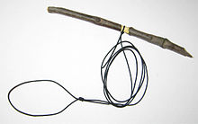A fish stringer is a line of rope or chain along which an angler can string fish that have been caught so they can be immersed and kept alive in water.[14]