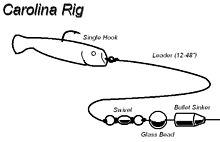 A rig is an arrangement of items used for fishing. It can be assembled of one or more lines, hooks, sinkers, bobbers, swivels, lures, beads, and other fishing tackle. A rig might be held by a rod, by hand, or attached to a boat or pier. Some rigs are designed to float near the surface of the water, others are designed to sink to the bottom. Some rigs are designed for trolling. Many rigs are designed especially for catching a single species of fish, but will work well for many different species.