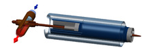 Glass-glass evacuated tubes are made with two borosilicate glass tubes fused together at one or both ends (similar a vacuum bottle or dewar flask). The absorber fin is placed inside the inner tube at atmospheric pressure. Glass-glass tubes have a very reliable seal, but the two layers of glass reduce the amount of sunlight that reaches the absorber. The selective coating can be deposited on the inner borosilicate tube (high vacuum side) to avoid this, but heat has then to flow through the poorly conducting glass thickness of the inner tube in this case. Moreover, moisture may enter the non-evacuated area inside the inner tube and cause absorber corrosion in particular when made from dissimilar materials (galvanic corrosion).