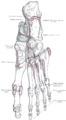 The plantar arteries. Superficial view. (Flexor digitorum brevis visible at center.) | |