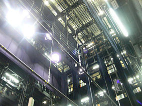 Fly systems are often used in conjunction with other theatre systems, such as scenery wagons, stage lifts and stage turntables, to physically manipulate the mise en scène.[1]