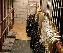 A hemp fly system, so named for the manila hemp rope that was once common in theatrical rigging, is the oldest type of fly system, certainly the simplest type of system. Recent research shows that the hemp system, although known for centuries, was not much used. The hemp system gained popularity first in the United States in the mid nineteenth century. It soon gained popularity in England, as it was inexpensive and provided a great deal of flexibility for moving scenery.[4] Hemp systems are also known as rope line systems, or simply as rope systems.