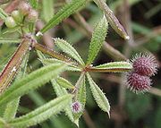 Cleavers are annuals with creeping straggling stems which branch and grow along the ground and over other plants. They attach themselves with the small hooked hairs which grow out of the stems and leaves. The stems can reach up to three feet or longer, and are angular or square shaped.[7] The leaves are simple, narrowly oblanceolate to linear, and borne in whorls of six to eight.[7][8][9]