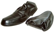 Galoshes, also known as dickersons, gumshoes, rubbers, or overshoes, are a type of rubber boot that is slipped over shoes to keep them from getting muddy or wet. In the United States, the word galoshes may be used interchangeably with boot, especially a rubberized boot. In the United Kingdom, however, a galosh is an overshoe made of a weatherproof material to protect a more vulnerable shoe underneath and keep the foot warm and dry. Galoshes is also the word for shoes in the Azorean Portuguese language.