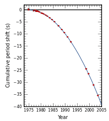 The first observation of a decrease in orbital period due to the emission of gravitational waves was made by Hulse and Taylor, using the binary pulsar PSR1913+16 they had discovered in 1974. This was the first detection of gravitational waves, albeit indirect, for which they were awarded the 1993 Nobel Prize in physics.[95] Since then, several other binary pulsars have been found, in particular the double pulsar PSR J0737-3039, in which both stars are pulsars.[96]