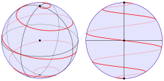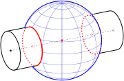 - ^ It does not matter which direction is chosen, the distance is the sphere's radius × π.