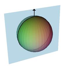 is also the equation of a sphere for arbitrary values of the parameters s and t. The set of all spheres satisfying this equation is called a pencil of spheres determined by the original two spheres. In this definition a sphere is allowed to be a plane (infinite radius, center at infinity) and if both the original spheres are planes then all the spheres of the pencil are planes, otherwise there is only one plane (the radical plane) in the pencil.[3]
