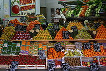 The concept is not common in the United States, as already in the 1940s, most fruit and vegetable sales in stores were at grocery stores, in addition to sales off pushcarts or other itinerant vendors, and at produce stands and farmers markets.[1]