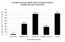 2 Emissions From Fuel Combustion: Highlights (2011 edition), Paris, France: International Energy Agency (IEA), 2011, p. 9, archived from the original on 17 March 2017, retrieved 7 March 2012 - ^ "EDGAR - Fossil CO2 emissions of all world countries, 2018 report - European Commission". edgar.jrc.ec.europa.eu. Retrieved 28 November 2019.