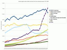 2 Emissions" (PDF). Proceedings of the National Academy of Sciences of the United States of America. 107 (12): 5687–5692. Bibcode:2010PNAS..107.5687D. doi:10.1073/pnas.0906974107. PMC 2851800. PMID 20212122. Retrieved 18 April 2011. - ^ "International Carbon Flows". Carbon Trust. May 2011. Retrieved 12 November 2012.