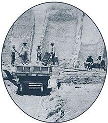 Guano mining in Peru was at first done with black slaves.[44] After Peru formally ended slavery, it sought another source of cheap labor. In the 1840s and 1850s, thousands of men were blackbirded (coerced or kidnapped) from the Pacific islands and southern China.[44] Thousands of coolies from South China worked as "virtual slaves" mining guano.[15] By 1852, Chinese laborers comprised two-thirds of Peru's guano miners;[45] others who mined guano included convicts and forced laborers paying off debts.[15] Chinese laborers agreed to work for eight years in exchange for passage from China, though many were misled that they were headed to California's gold mines.[45] Conditions on the guano islands were very poor, commonly resulting in floggings, unrest, and suicide. Workers experienced lung damage by inhaling guano dust, were buried alive by falling piles of guano, and risked falling into the ocean.[15] After visiting the guano islands, U.S. politician George Washington Peck wrote: