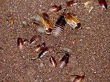 Invertebrates inhabit guano piles, including fly larvae, nematodes, springtails, beetles, mites, pseudoscorpions, thrips, silverfish, moths, harvestmen, spiders, isopods, millipedes, centipedes, and barklice. The invertebrate communities associated with the guano depends on the bat species' feeding guild: frugivorous bat guano has the greatest invertebrate diversity. Some invertebrates feed directly on the guano, while others consume the fungi that use it as a growth medium. Predators such as spiders depend on guano to support their prey base.[60] Vertebrates consume guano as well, including the bullhead catfish and larvae of the grotto salamander.[58]