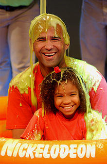 In North America, You Can't Do That on Television, a Canadian children's show popular on Nickelodeon developed by a British TV producer, Roger Price, routinely subjected its characters to "slime" (usually green, but sometimes in other colours), usually when they said, "I don't know." It became a staple of the show where other actors would try to encourage their peers to say a phrase to get them slimed. A sliming scene from a 1982 episode of You Can't Do That on Television was also used in the opening of the 1987 film Fatal Attraction, and references to the series have been used in mainstream U.S. television series ranging from NewsRadio to Family Guy. This aspect of the cult show later became iconized in Nickelodeon's slime logo, subsequent game shows such as Double Dare, What Would You Do?, Figure It Out, and BrainSurge revolving around slime, pies in the face, and other forms of mess, and live events in which participants (including celebrities, particularly at the annual Kids' Choice Awards) would be offered the chance to get slimed or publicly humiliated. In the late 1980s, Nickelodeon and its Canadian counterpart, YTV, even held write-in contests in which the grand prize was a trip to the YCDTOTV set in Ottawa, Ontario, to be slimed. The popularity of Nickelodeon's slime shows spawned imitators such as the short-lived 1988 syndicated game show Slime Time (no relation to Nickelodeon's later Slime Time Live), in which schoolteachers were the victims of green gungings.