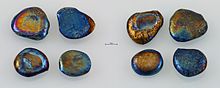 Hafnium is a chemical element with the symbol Hf and atomic number 72. A lustrous, silvery gray, tetravalent transition metal, hafnium chemically resembles zirconium and is found in many zirconium minerals. Its existence was predicted by Dmitri Mendeleev in 1869, though it was not identified until 1923, by Coster and Hevesy, making it the last stable element to be discovered. Hafnium is named after Hafnia, the Latin name for Copenhagen, where it was discovered.[4][5]