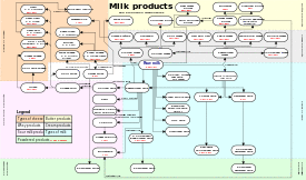 Cream is a dairy product composed of the higher-fat layer skimmed from the top of milk before homogenization. In un-homogenized milk, the fat, which is less dense, eventually rises to the top. In the industrial production of cream, this process is accelerated by using centrifuges called "separators". In many countries, it is sold in several grades depending on the total butterfat content. It can be dried to a powder for shipment to distant markets, and contains high levels of saturated fat.[1][2]