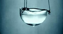 Helium II also exhibits a creeping effect. When a surface extends past the level of helium II, the helium II moves along the surface, against the force of gravity. Helium II will escape from a vessel that is not sealed by creeping along the sides until it reaches a warmer region where it evaporates. It moves in a 30 nm-thick film regardless of surface material. This film is called a Rollin film and is named after the man who first characterized this trait, Bernard V. Rollin.[26][96][97] As a result of this creeping behavior and helium II's ability to leak rapidly through tiny openings, it is very difficult to confine. Unless the container is carefully constructed, the helium II will creep along the surfaces and through valves until it reaches somewhere warmer, where it will evaporate. Waves propagating across a Rollin film are governed by the same equation as gravity waves in shallow water, but rather than gravity, the restoring force is the van der Waals force.[98] These waves are known as third sound.[99]