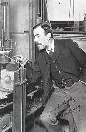 In 1907, Ernest Rutherford and Thomas Royds demonstrated that alpha particles are helium nuclei, by allowing the particles to penetrate the thin, glass wall of an evacuated tube, then creating a discharge in the tube, to study the spectrum of the new gas inside.[40] In 1908, helium was first liquefied by Dutch physicist Heike Kamerlingh Onnes by cooling the gas to less than 5 K (−268.15 °C; −450.67 °F).[41][42] He tried to solidify it, by further reducing the temperature, but failed, because helium does not solidify at atmospheric pressure. Onnes' student Willem Hendrik Keesom was eventually able to solidify 1 cm3 of helium in 1926 by applying additional external pressure.[43][44]