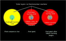 - ^ Deupree, R. G. (1996-11-01). "A Reexamination of the Core Helium Flash". The Astrophysical Journal. 471 (1): 377–384. Bibcode:1996ApJ...471..377D. CiteSeerX 10.1.1.31.44. doi:10.1086/177976.