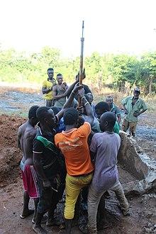 Workers and people from the nearby town helping repair a water borehole in Ghana