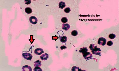 Hemolysis by Streptococcus seen on a plate