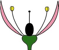 In flowering plants, the perianth may be described as being either dichlamydeous/heterochlamydeous in which the calyx and corolla are clearly separate, or homochlamydeous, in which they are indistinguishable (and the sepals and petals are collectively referred to as tepals). When the perianth is in two whorls, it is described as biseriate. While the calyx may be green, known as sepaloid, it may also be brightly coloured, and is then described as petaloid. When the undifferentiated tepals resemble petals, they are also referred to as "petaloid", as in petaloid monocots, orders of monocots with brightly coloured tepals. Since they include Liliales, an alternative name is lilioid monocots. The corolla and petals have a role in attracting pollinators, but this may be augmented by more specialised structures like the corona (see below).