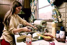 The housewife's work has often been the subject of folk songs. Examples include: "The Housewife's Lament" (from the diary of Sarah Price, Ottawa, Illinois, mid 19th century);[43] "Nine Hours a Day" (1871 English song, anonymous); "A Woman's Work is Never Done", or "A Woman Never Knows When her Day's Work is Done";[44] "The Labouring Woman"; "How Five and Twenty Shillings were Expended in a Week" (English popular songs); and "A Woman's Work" (London music hall song by Sue Pay, 1934).[45] "The Housewife's Alphabet" by Peggy Seeger was issued as a Blackthorne Records single in 1977 with "My Son".[46]