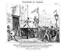 A humbug is a person or object that behaves in a deceptive or dishonest way, often as a hoax or in jest.[1][2] The term was first described in 1751 as student slang, and recorded in 1840 as a "nautical phrase".[3] It is now also often used as an exclamation to describe something as hypocritical nonsense or gibberish.
