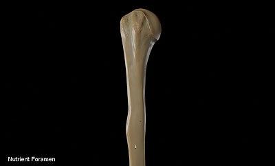 The nutrient foramen of the humerus is located in the anteromedial surface of the humerus. The nutrient arteries enter the humerus through this foramen.